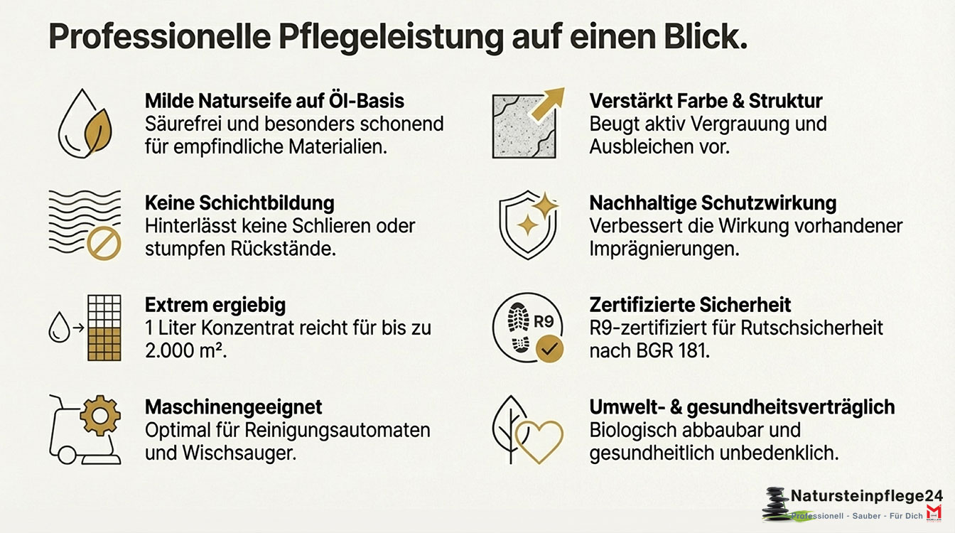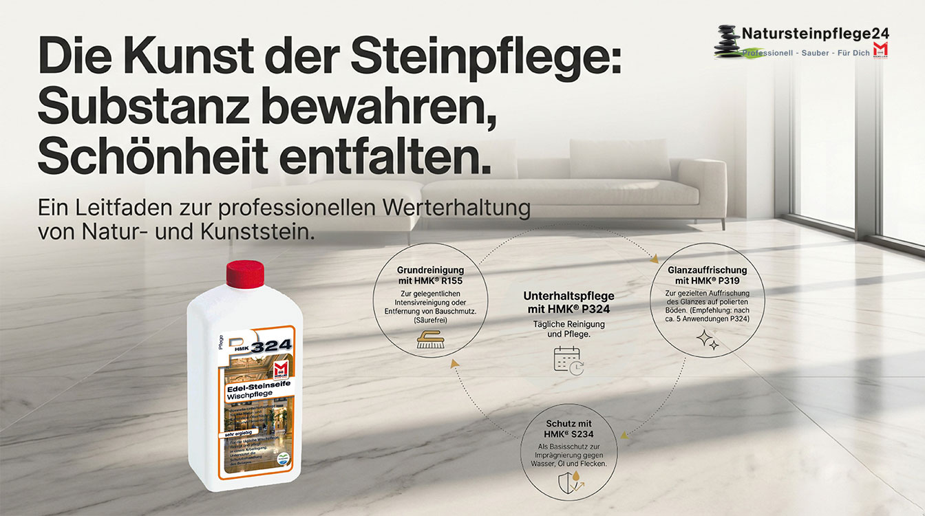 Milde Wischpflege für alle Steinbeläge – ohne Schichtbildung oder Auslaugung