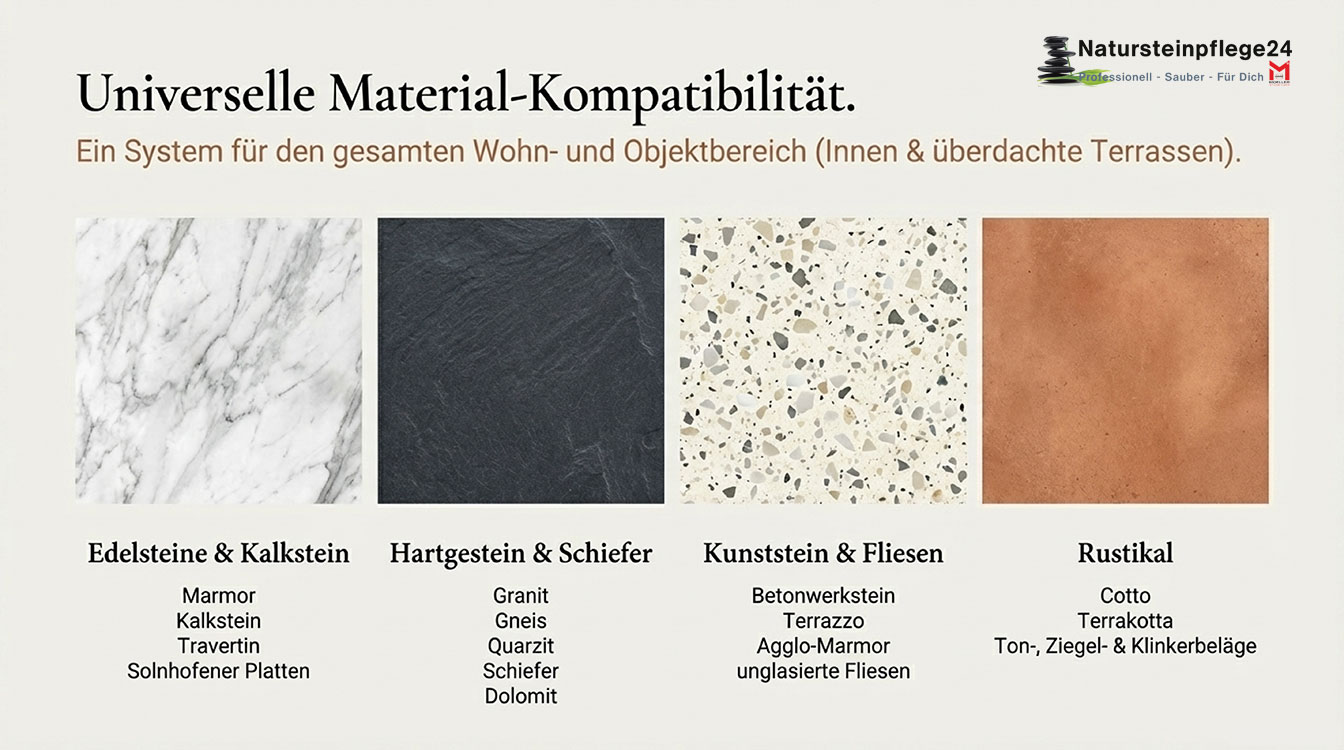 Die einzelnen Vorteile ergänzen sich zu einer alltagstauglichen Komplettpflege – sowohl für private Wohnräume als auch für stark frequentierte Objektbereiche mit hochwertigem Steinbelag.